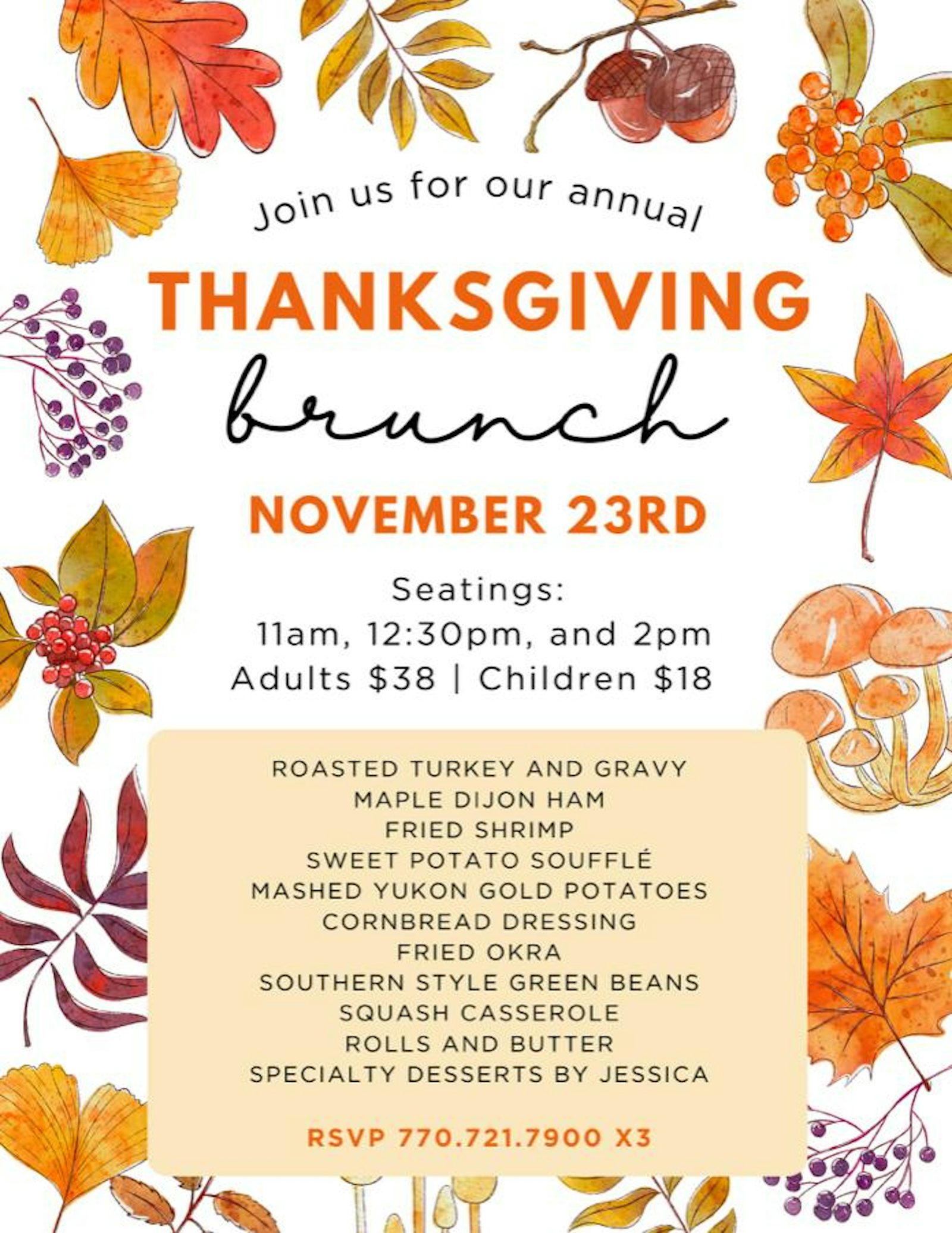 Join us for our Annual Thanksgiving Brunch.